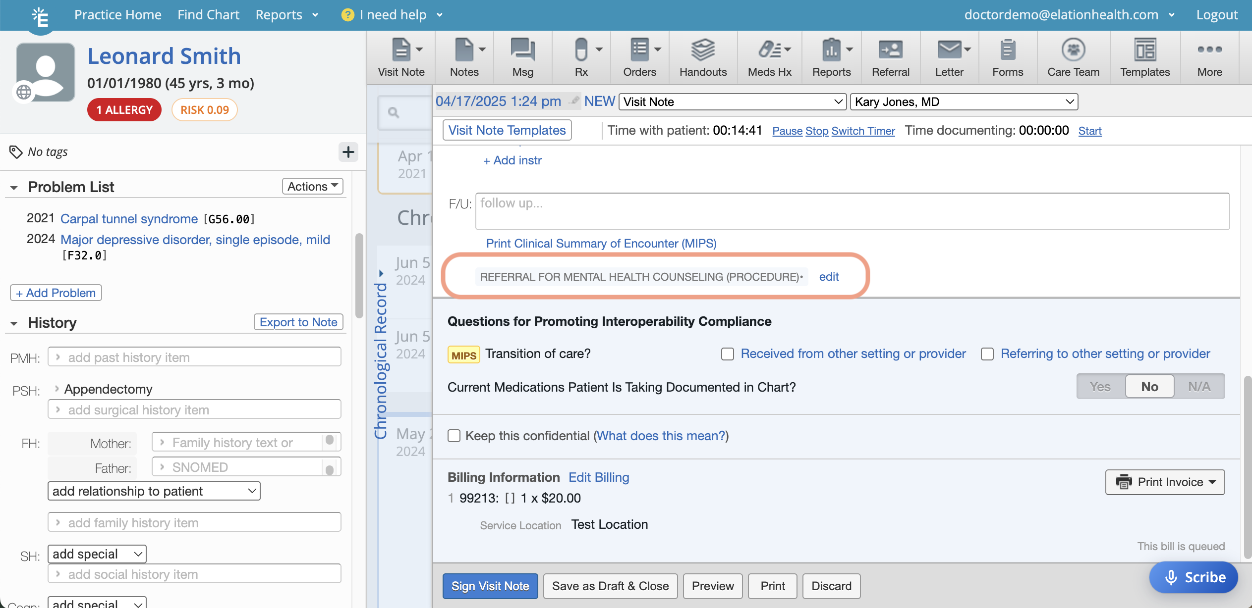 | Refer for counseling. | Use the Referral feature to refer the patient for counseling. • Add the corresponding Document Tag to the visit note to reflect the action taken during the encounter. ![]() |