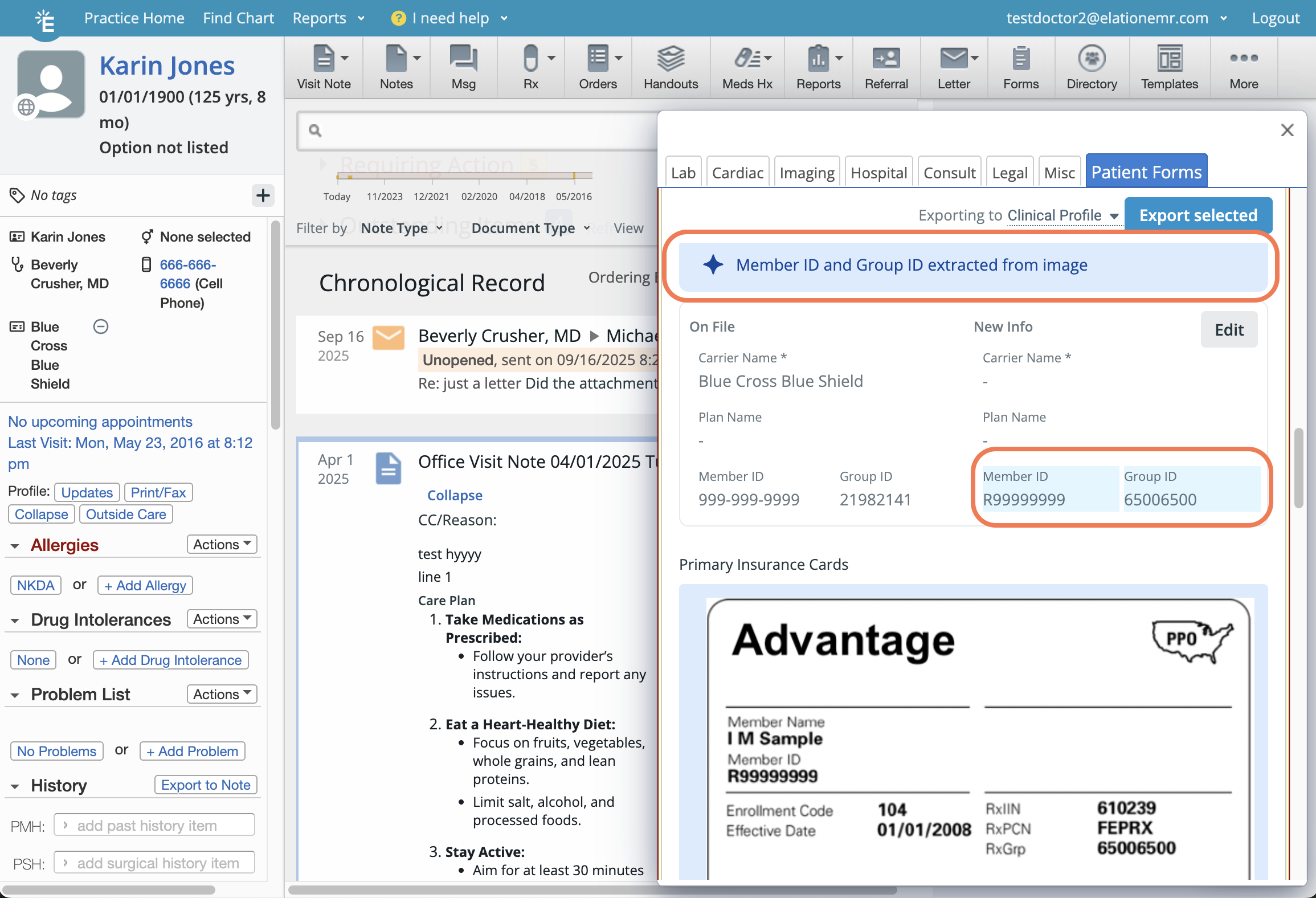 You must update the Insurance Carrier Name, Plan Name, Group ID and Member ID information on file before you can export the images to the patient’s demographics. This is to make sure your patients always have the correct insurance data stored in their chart.Historical insurance card images will be moved to the Historical Insurance Records section of the patient’s demographics.