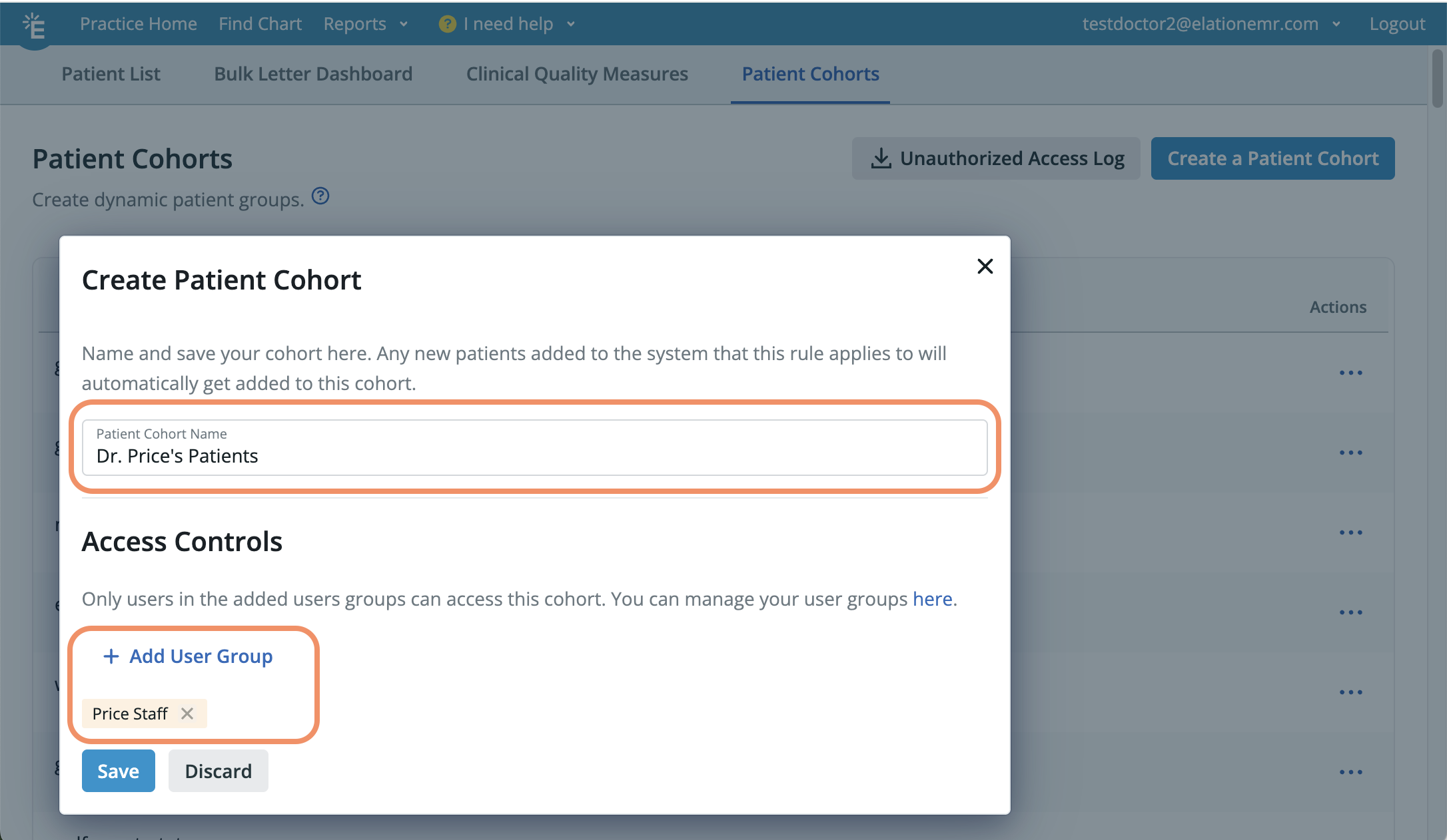 New Patient Cohort restrictions take effect the next time users log into Elation. After creating cohorts, ask all users to log out and log back in to apply the updated settings.The Provider assigned in practice always has access, even if not part of the Patient Cohort. Be sure each patient has the correct provider assigned.
