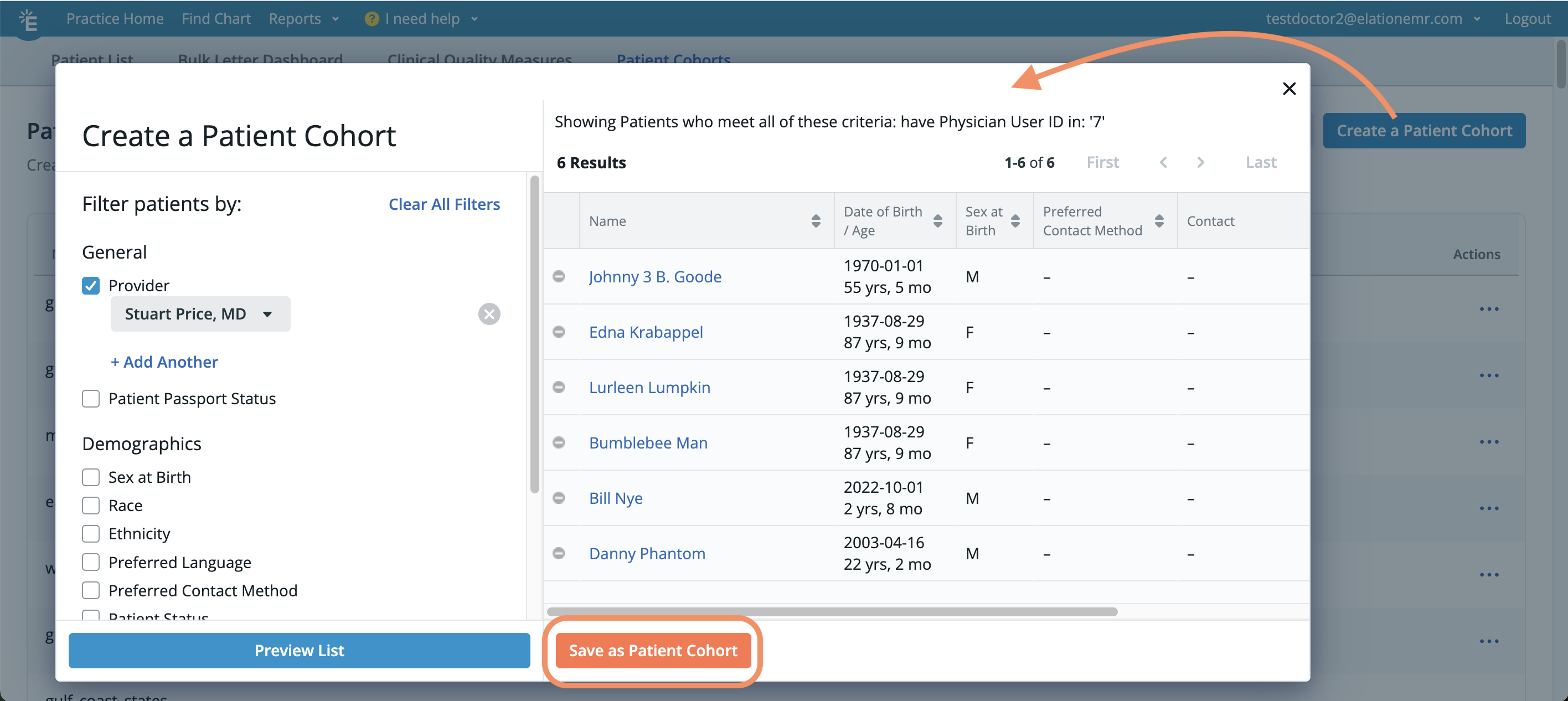 | 4 | Click Preview List to see the patients that meet the selected criteria. |