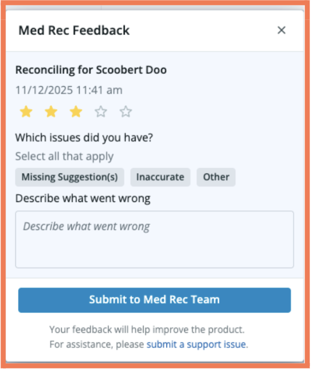 Lets you quickly rate and respond to the AI’s “Likely Not Taking” suggestions, giving us real-world insight that continuously sharpens accuracy and improves the reconciliation experience for every practice. (Learn more in the Help Center.)