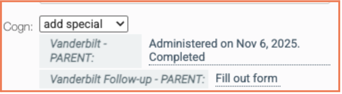 Complete the new NICHQ Vanderbilt ADHD PARENT and follow-up PARENT screeners in-visit or send them as Patient Forms to caregivers ahead of time, with results that are easily exportable into the Visit Note. Learn how in this Help Center Article.