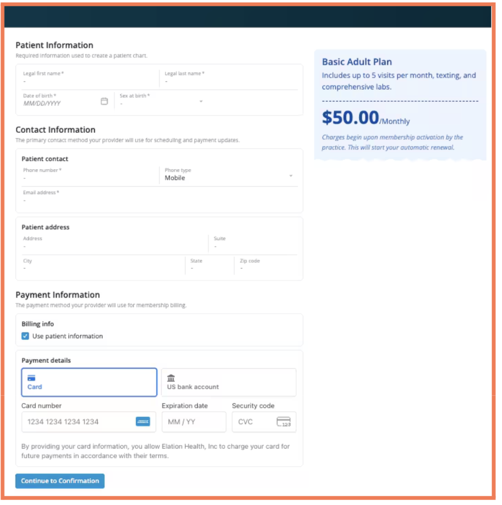Elation’s new DPC membership features simplify enrollment and payments — reducing vendor complexity and giving practices more time to focus on patient care.Patient self-enrollment