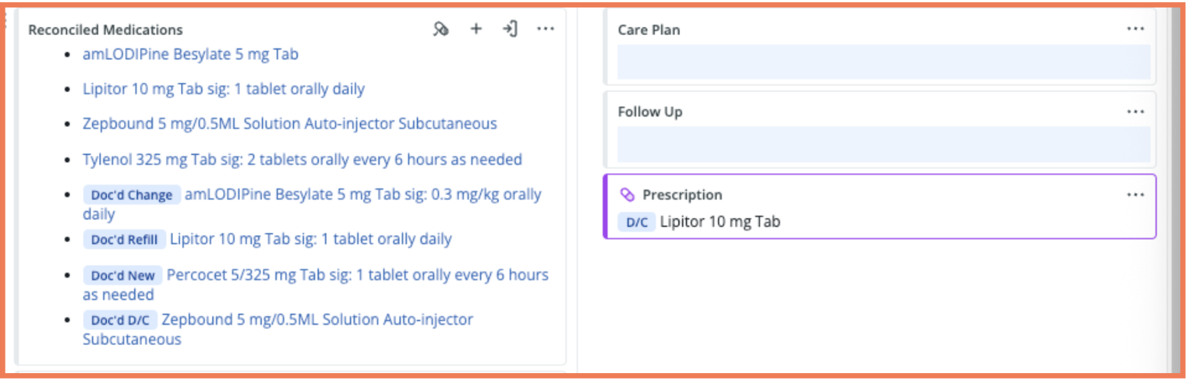 Clearly distinguishes a patient’s full Reconciled Medications history from current Rx Orders, helping you document confidently and keep both records aligned. (Full guidance available in the Help Center.)