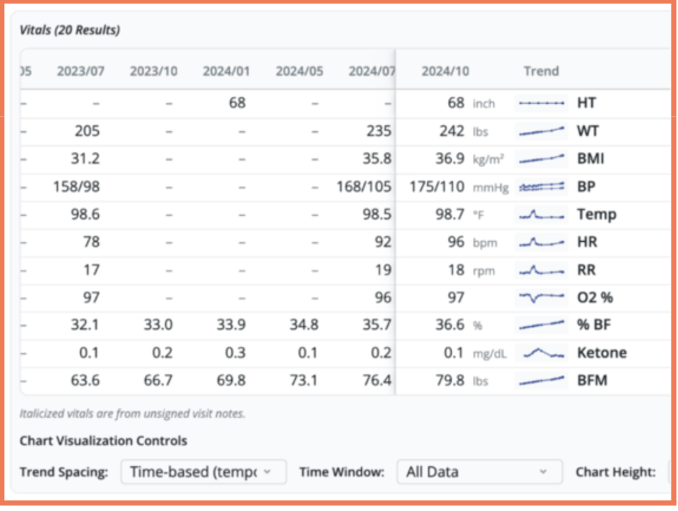 The Magic Table now includes inline, row-level visualizations, or sparklines, for your patient’s trended vitals and labs, making it easier to spot changes at a glance. This enhancement builds on the recent redesign that improved readability by aligning the chronology with how you naturally think: newest values to the right. By visually highlighting trends directly in the patient chart, you can reduce cognitive load and identify patterns faster during chart review and at the point of care.