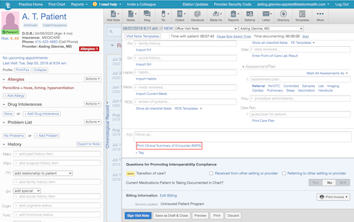 Invite at least 1 patient to Patient Passport within 4 days of the encounter. Elation will automatically share a summary of each completed visit with the patient via their Passport account. For customers who do not want to use the Patient Passport feature, click the “Print Clinical Summary of Encounter (MIPS)” button at the bottom of your visit note to provide the patient with a summary of their visit and then sign the visit note.