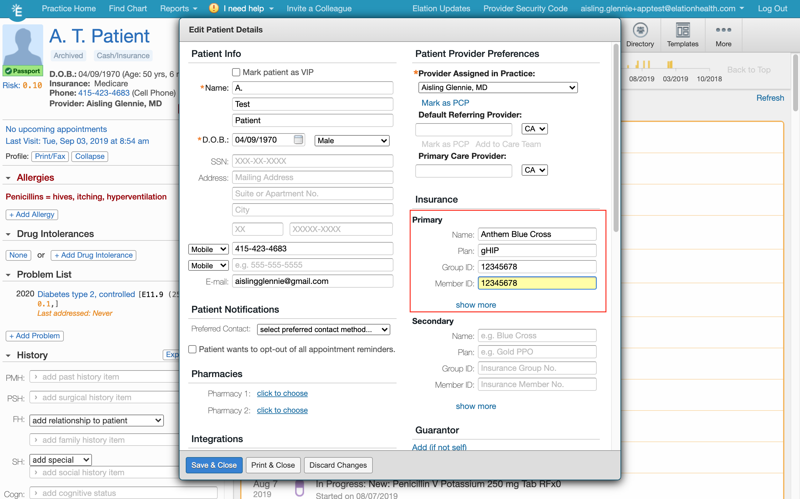 - If the order will be billed to a “Third Party” (e.g Commercial, Medicare, Worker’s Comp), confirm that the patient’s insurance information is documented in their patient demographics by clicking on the patient’s name in the chart.