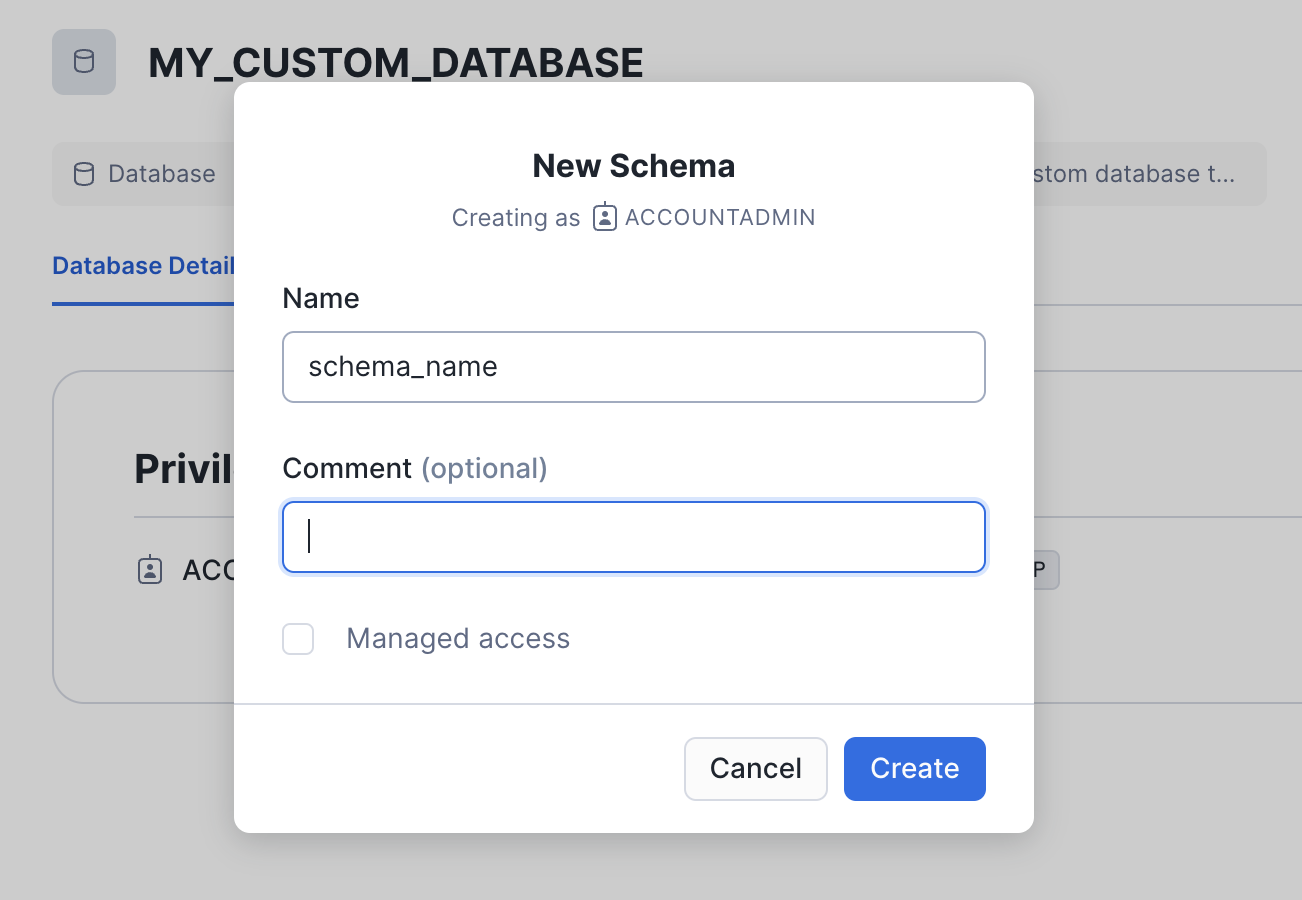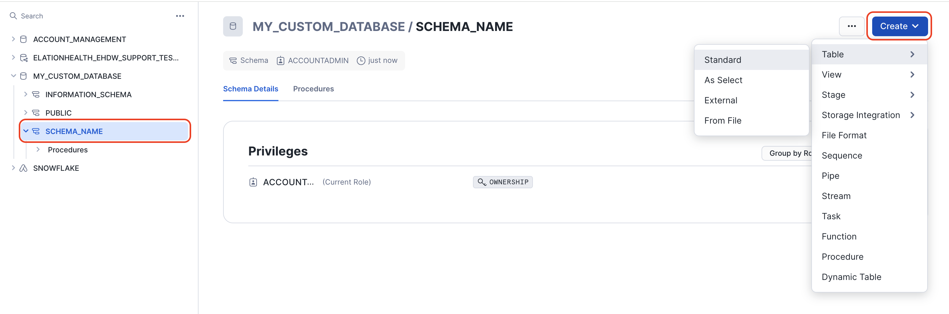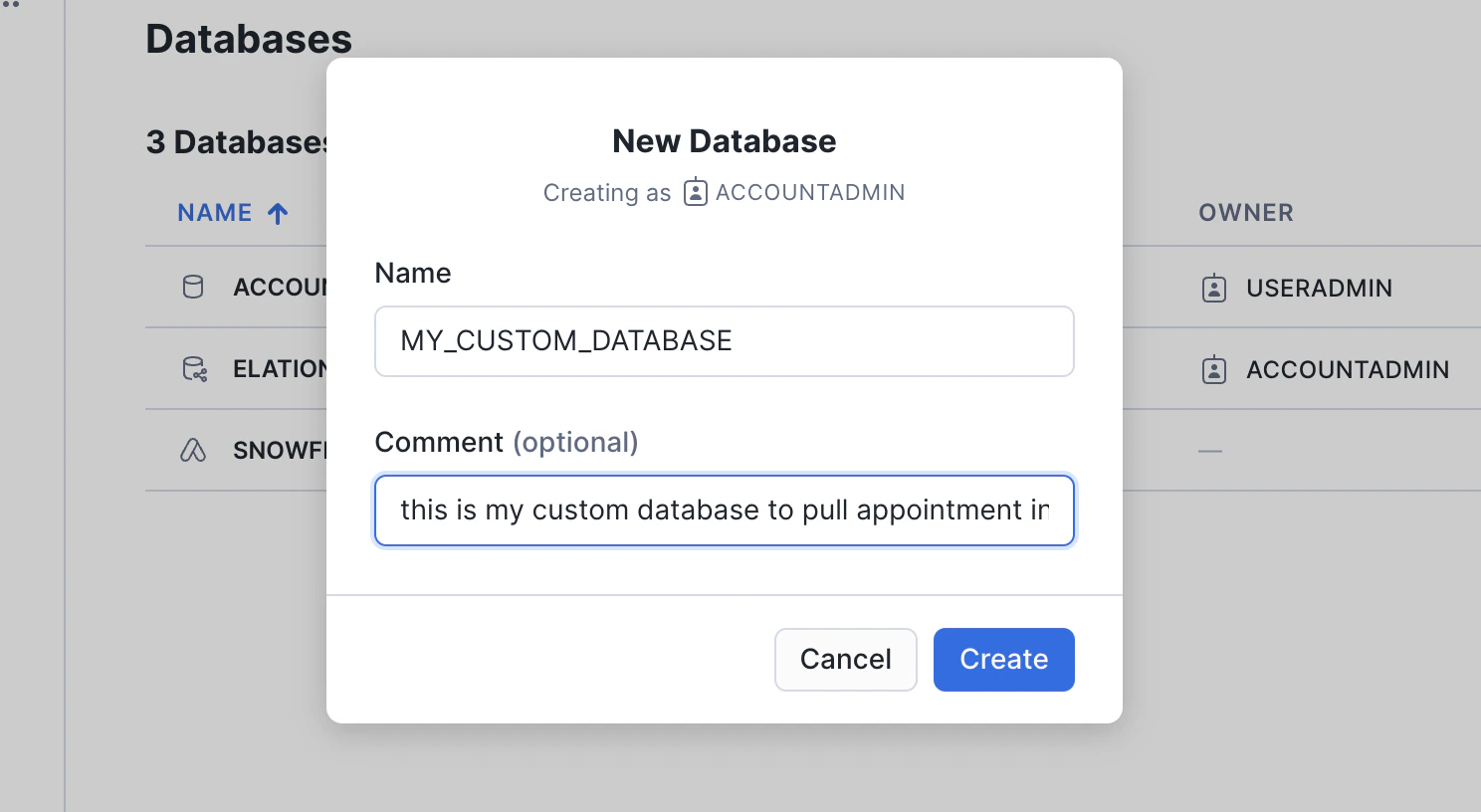 You can create custom tables in Snowflake which will allow you to aggregate data from your master database to analyze and run reports. For more information check out the Snowflake documentation https://docs.snowflake.com/en/sql-reference/sql/create-table Step 1: Create your databaseDocumentation Index