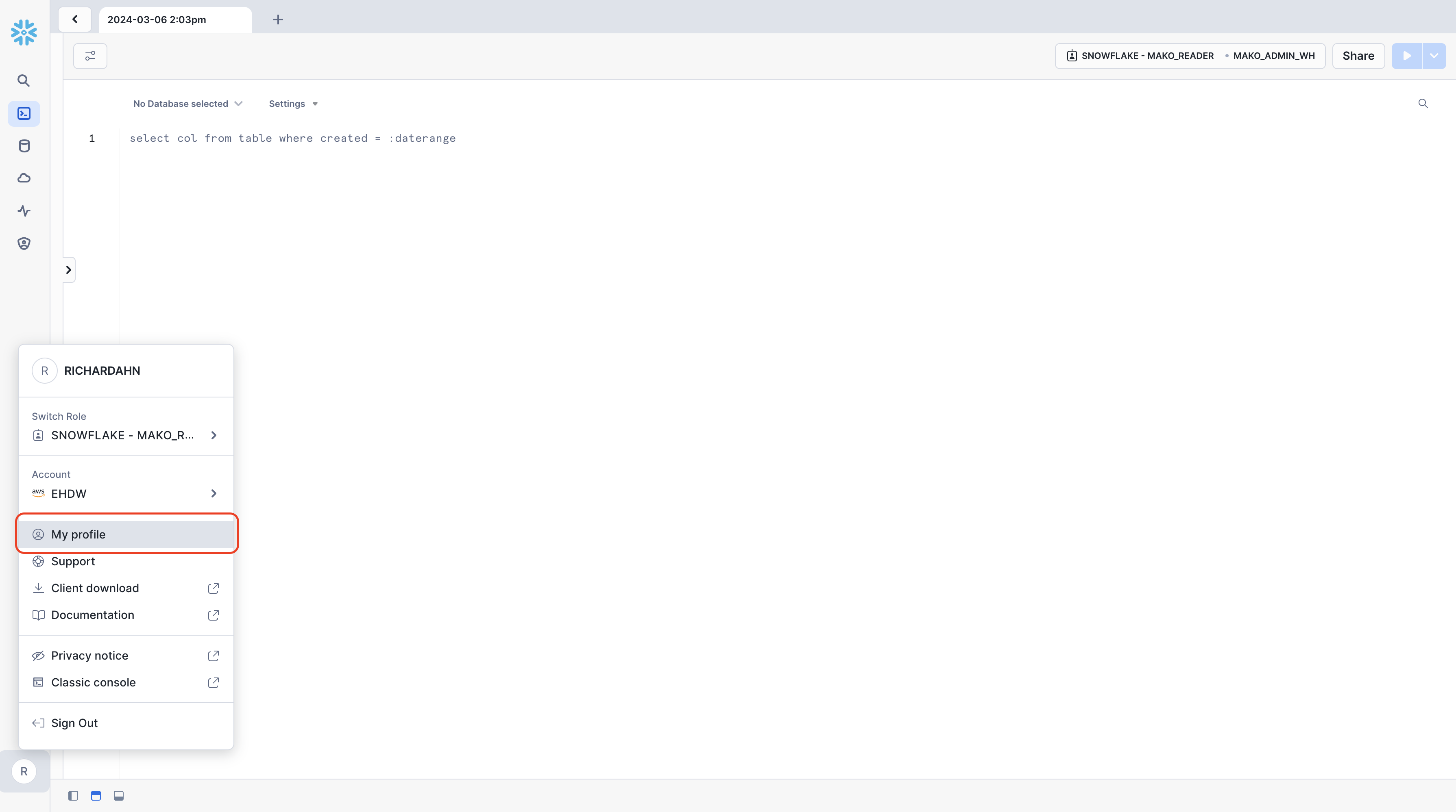 - Log into Snowflake