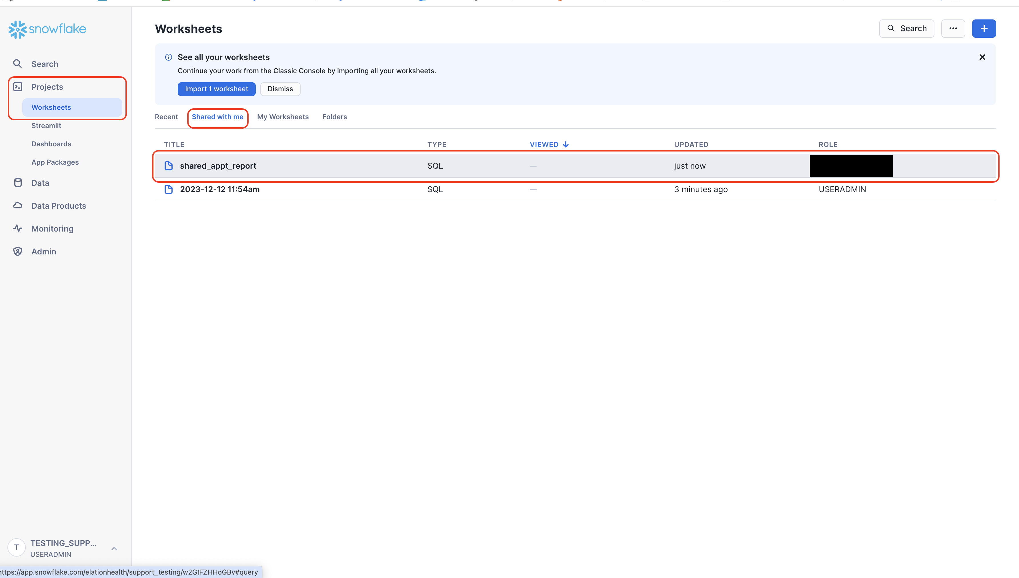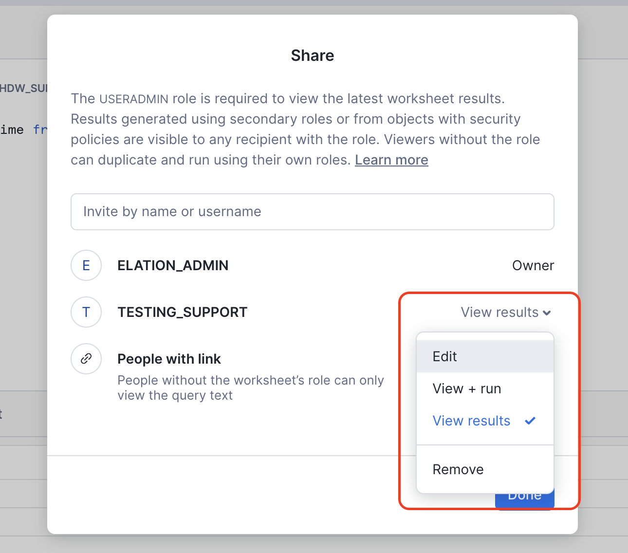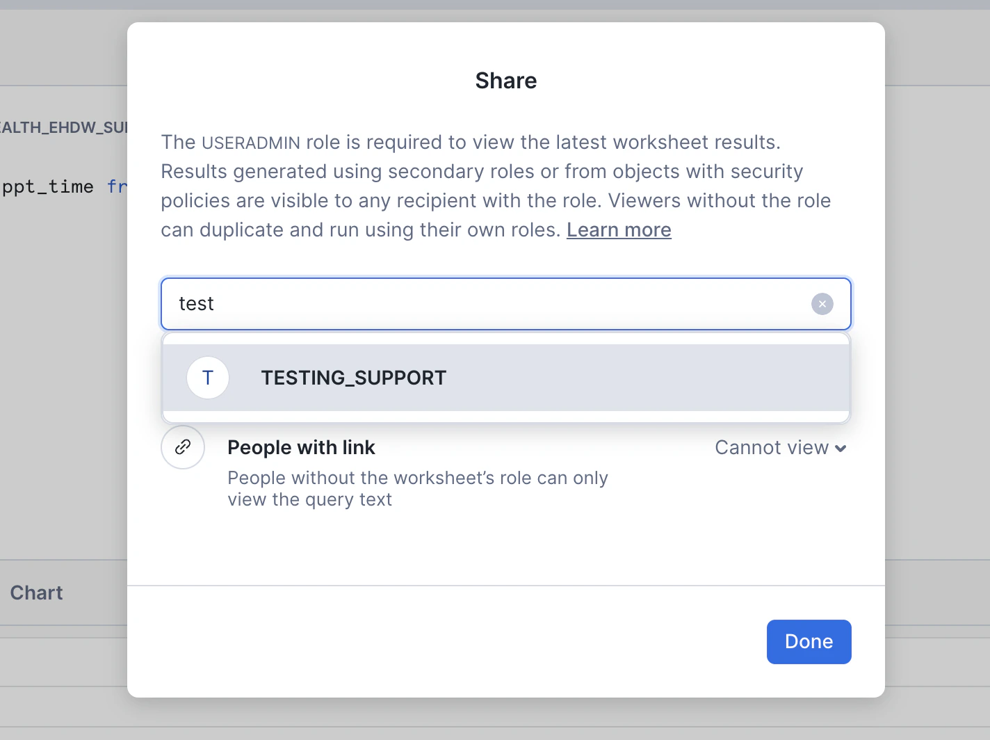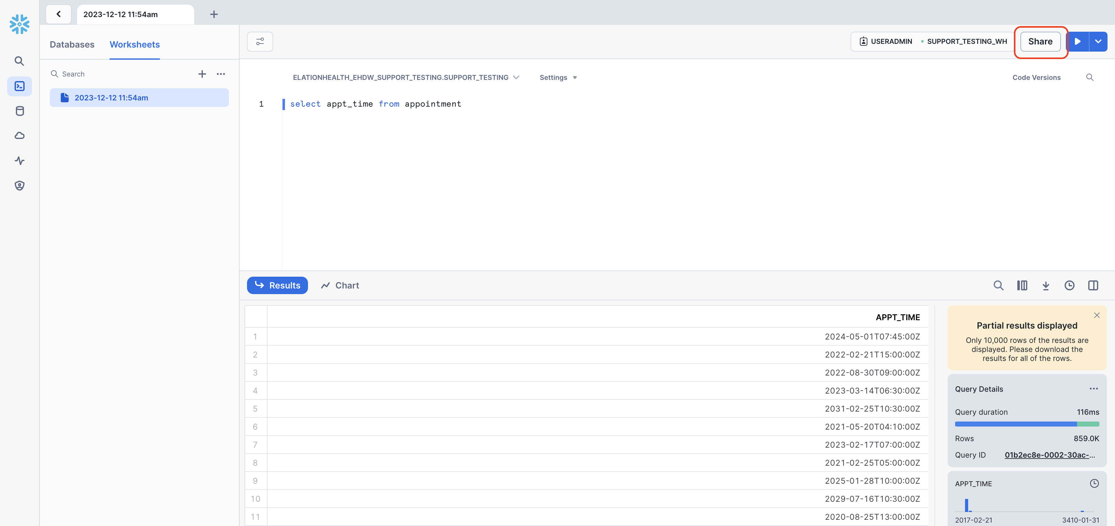 You can share worksheets with multiple users on your Snowflake account. Step 1: Access worksheets and write you queryDocumentation Index
