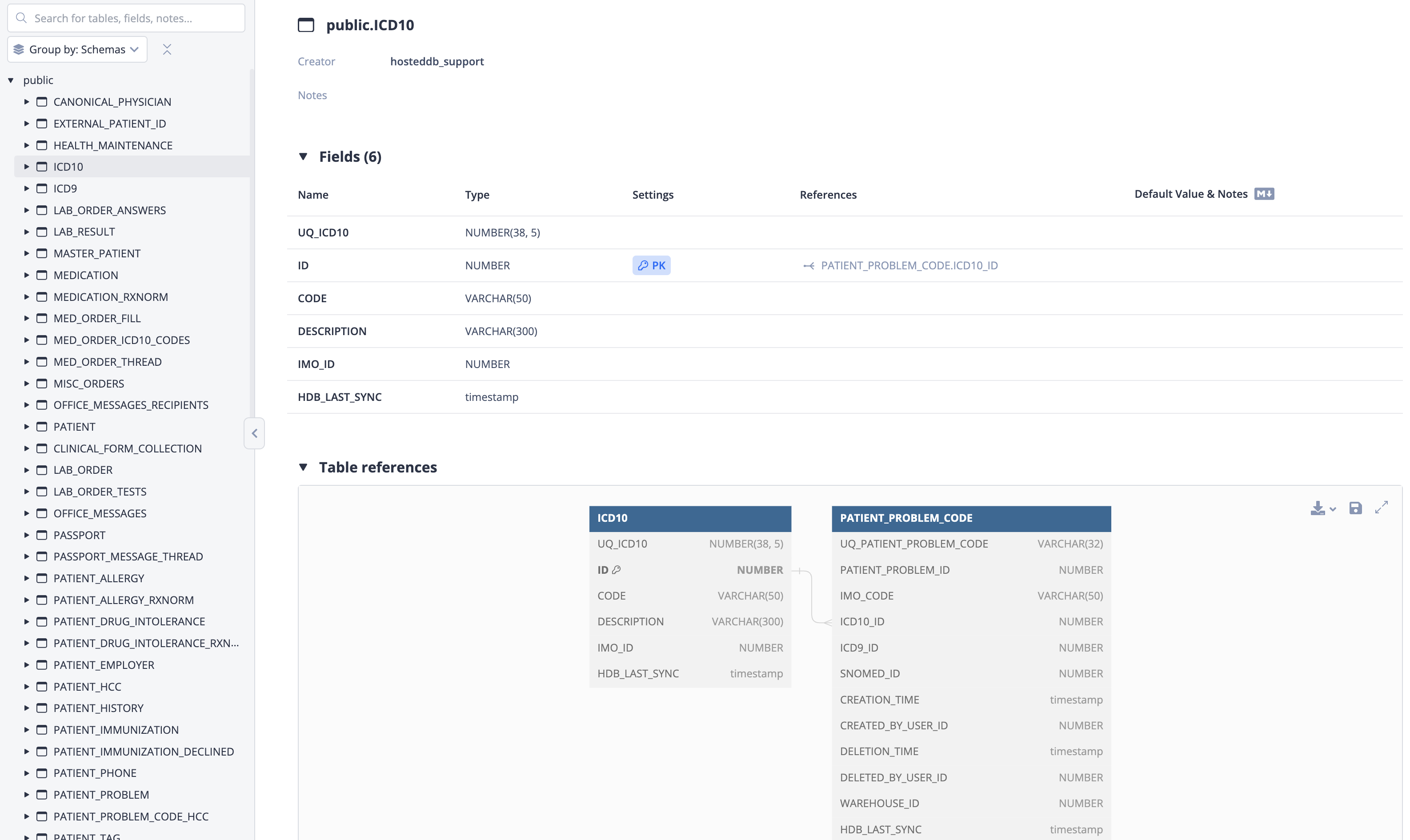 You can check our searchable documentation to view what tables and columns are available in the Hosted Database along with their relationships. https://dbdocs.io/hosteddb_support/hosted_database_snowflake